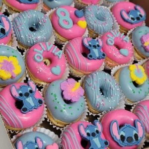 Comemore com estilo e doçura! Faça a sua encomenda de mini cake donuts personalizados para deixar sua festa ainda mais especial.
